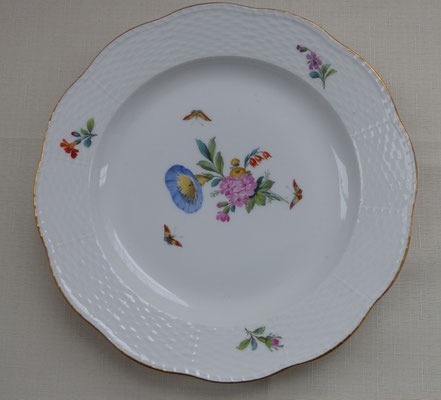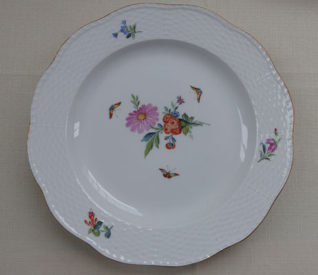 Durchmesser ca. 24,7 cm - Aufglasurmalerei farbig staffiert - Blumen und Schmetterlinge - Rand Goldmalerei