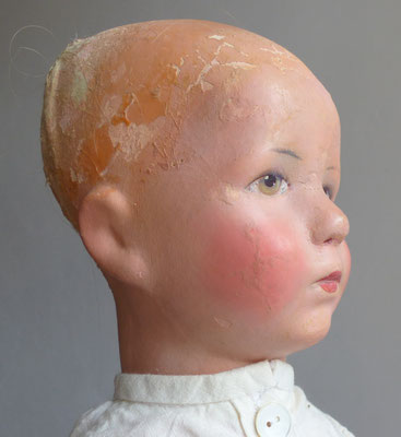 typischer Jakimowkopf und hergestellt im Westteil Deutschlands - hier als Junge mit kurzen Haaren (Jungenpuppen generell und auch bei Kruse wurden wesentlich weniger produziert als