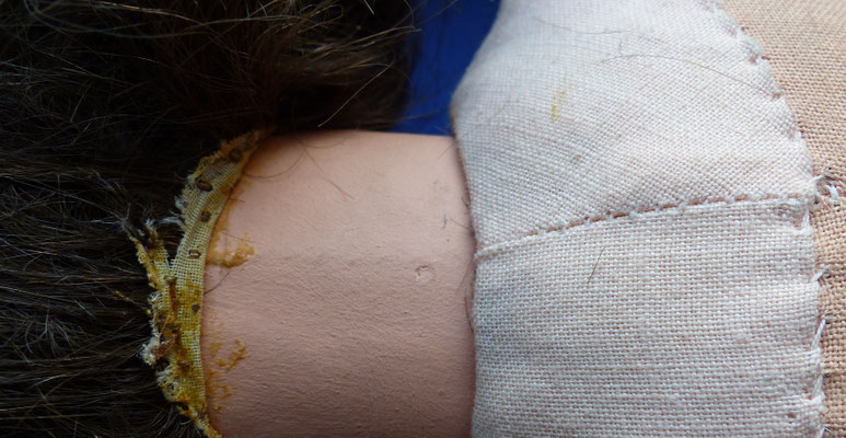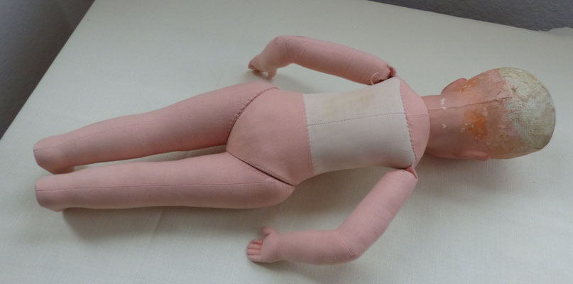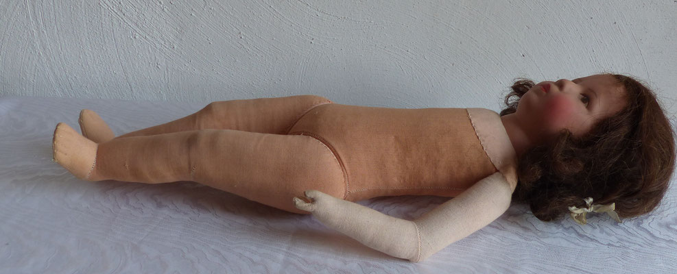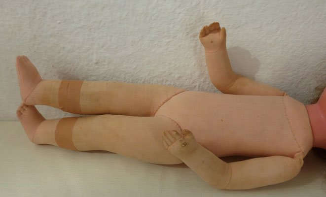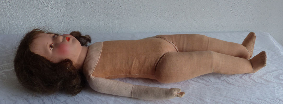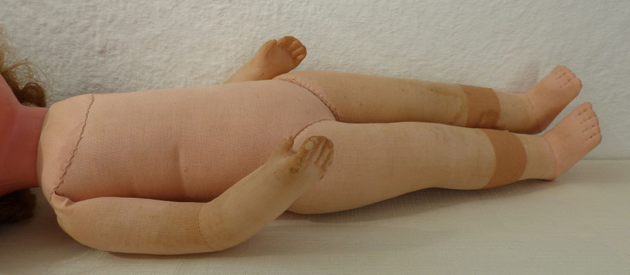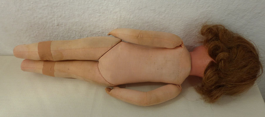 den Gesamtzustand würde ich noch als gut bis befriedigend werten, das Alter der Puppe von mehr als 60 Jahren berücksichtigend