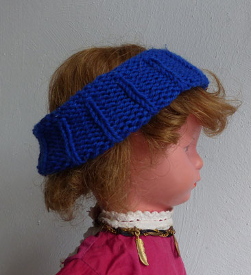 mit einem Zweiteiler etwa aus den 1960er Jahren bekleidet sowie einer Häkelhaube