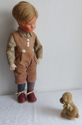 alte Käthe Kruse Puppe IX in 37 cm um 1955/58 u. große Steiff Maus dazu