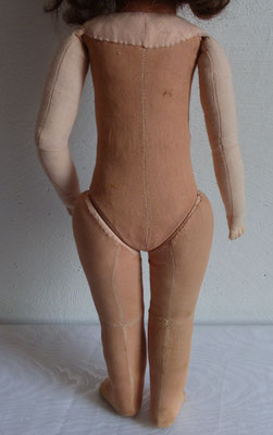 originaler handgestopfter Nesselkörper mit Stempeln unter Fußsohlen (somit eine West-Puppe) - Körper mit Altersspuren (siehe Fotos - teils ein wenig Füllverlust - vermutlich Mottenbefall - stark unangenehme Gerüche weist sie aber nicht auf - habe die Puppe schon etwas länger und mir sind keine Motten begegnet)