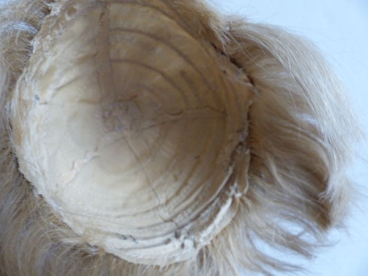 originale handgeknüpfte Perücke (wohl feines Kunsthaar, hellblondes Haar etwas nachgedunkelt durch normalen Flugschmutz)