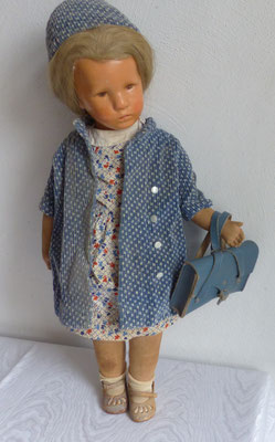 alte Käthe Kruse Puppe Stoffkopf mit langer Naht um 1940 mit altem Mäntelchen
