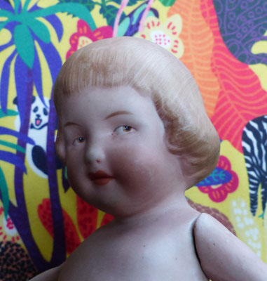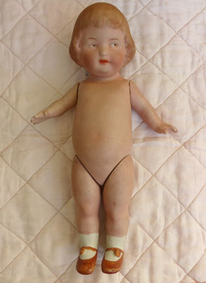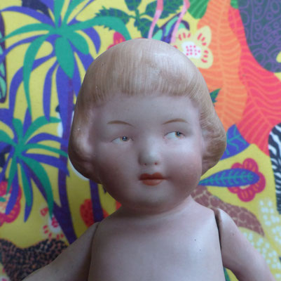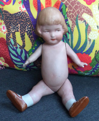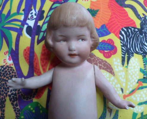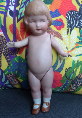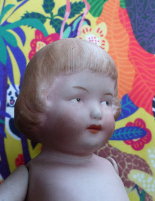 Googly Schielaugenpüppchen Ganzbiskuitporzellan alte Puppe ca. 21 cm