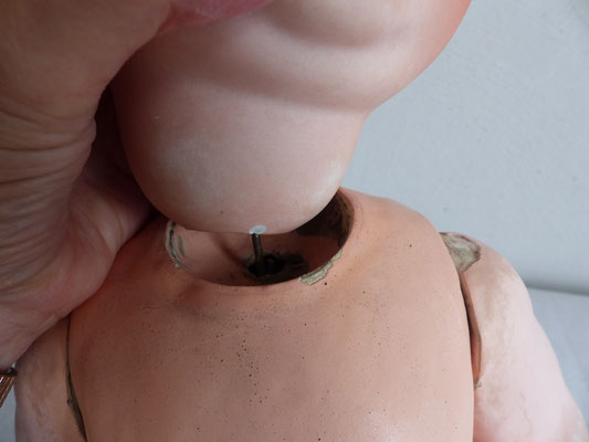 bis auf einen kleinen Chip an der Halskurbel, der nur zu sehen ist, wenn man den Kopf aus der Halspfanne zieht, kann ich am Porzellan keine Beschädigungen oder ähnliches feststellen