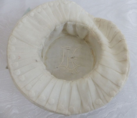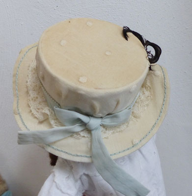 die Kleidung ist komplett ergänzt - alles Vintage - Unterrock antik - chicer und aufwändig hergestellter alter Hut (innen Pappe oder ähnlich verstärkendes Material - von aussen schmutzvergilbt - innen mit Monogramm - auf jeden Fall 1. Hälfte 20. Jhdt.)