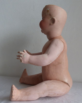 wohl originaler, gut erhaltener und gut ausgeformter Masse-Sitzbabykörper - stramm aufgezogen
