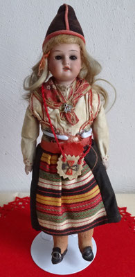 Zugabe: eine gut erhaltene original bekleidete Trachtenpuppe aus den 70er/80er Jahren - wohl ungarische Tracht - ca. 30 cm gro