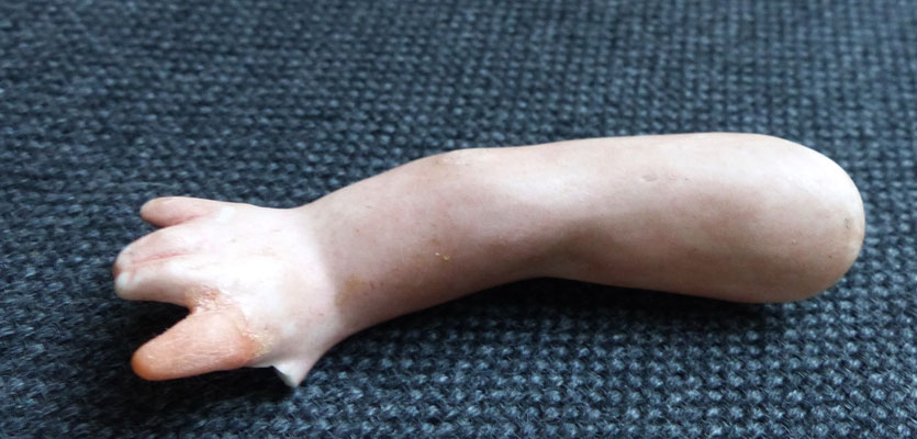 ein Ärmchen nicht mehr original (was kaum zu erkennen ist - das originale Ärmchen lege ich dazu ist aber nicht mehr gut erhalten) - an der anderer Hand kleiner Chip am Daumen