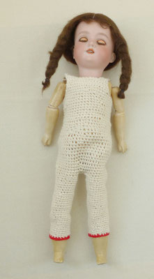 antike Puppe Brustkopf aus Biskuitporzellan in originaler Bekleidung um 1920