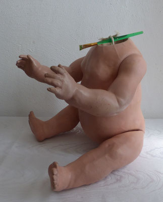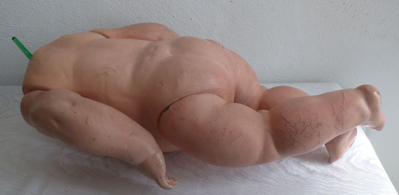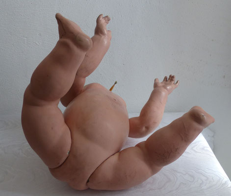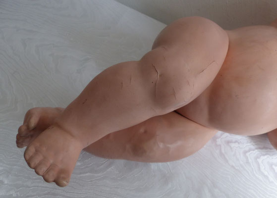ein Zeigefinger und ein kleiner Finger fehlen - der linke Oberschenkel ist heller als der rechte, hat aber die gleiche Ausformung - beim linken Bein ist der Unterschenkel verschmutzt (was