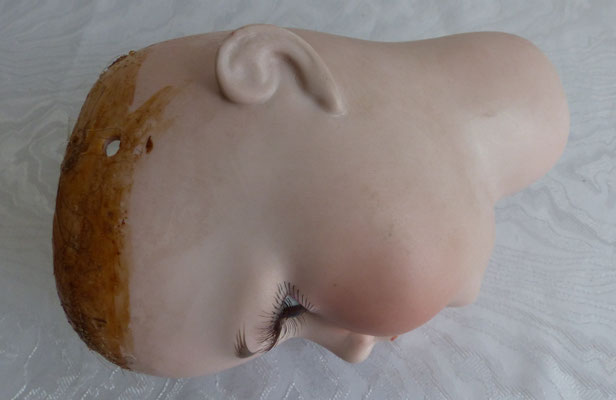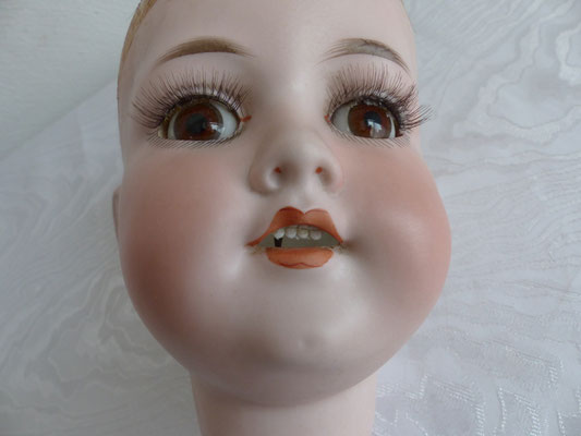 aus keramischer Masse - Sonneberger Porzellanfabrik - gemarkt: SP 3066 15 - mit funktionierenden Schlafaugen aus Glas - dichter Wimpernbesatz - Kopf