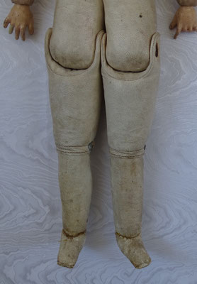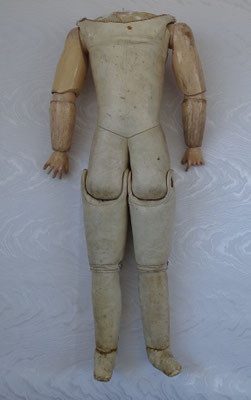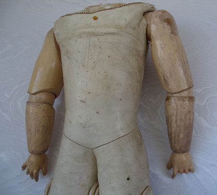 antiker Ziegenlederkörper mit gegliederten Armen 46 cm für ca. 60 cm Puppe mit Brustkopf