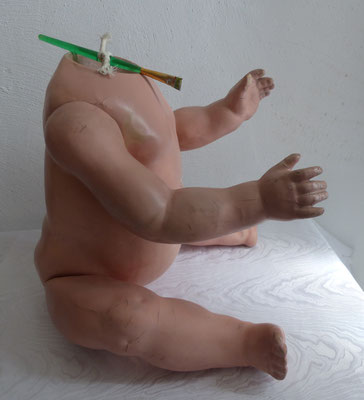 alter Gliederkörper ohne Unterbeine mit Gratiskopf Puppe Gesamtlänge ca. 60 cm