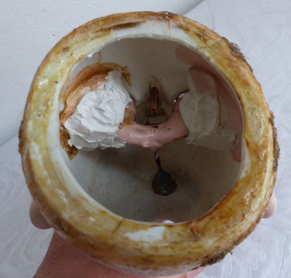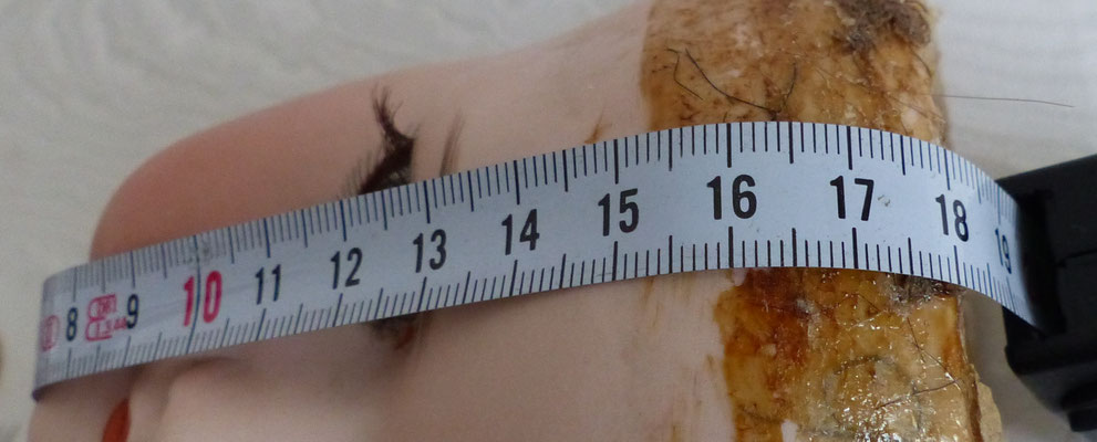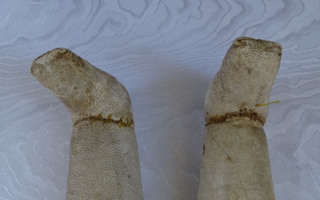 man vorsichtig etwas reinigen könnte - evtl. ist auch dieser nicht original zum Körper gehörig - aber auch das Unterbein hat augenscheinlich die gleiche Ausformung)