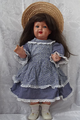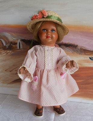 alte Puppe König & Wernicke mit Masse Stehkörper um 1945/50 mit Strohhut - ca. 48 cm lang