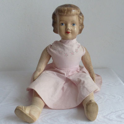 Anna Fehrle Puppe mit geschnitztem Holzkopf original bekleidet um 1940/50 selten