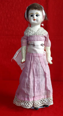 antike Brustkopfpuppe wohl original bekleidet um 1890 ca. 33 cm
