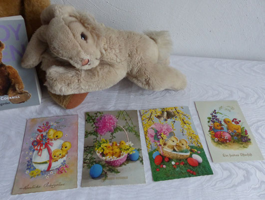 dazu vier alte Osterkarten - gelaufen - Westdeutschland gesendet nach Ostdeutschland - Mitte 1960er Jahre