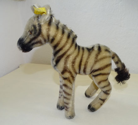 altes Steiff Zebra mit Knopf und Fahne Nr. 1420/22 hergestellt 1968-77