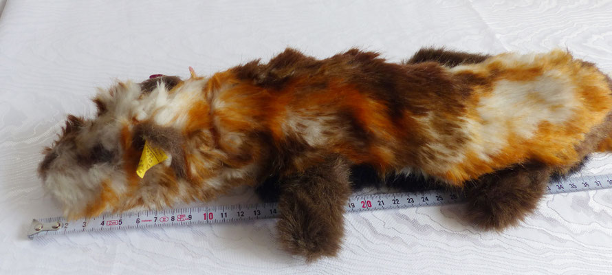 das "Hermännchen" ist ca. 32 cm (Schnauze bis Hinterteil gemessen) und ist vermutlich aus Nerzimitat oder ähnlichem hergestellt - superniedliches Gesicht