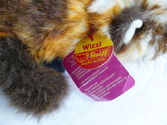 Pappschildchen "Wizzi", Knopf und sehr gut lesbare Fahne Nr. 2270/25 sind vorhanden, ebenso das lilafarbene Schildchen mit Hinweisen